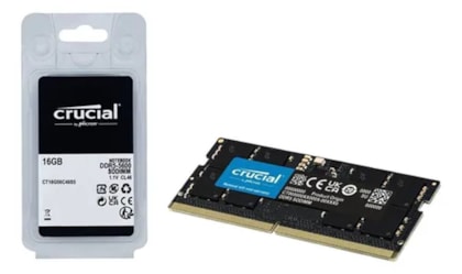 A Memória Crucial DDR5 16GB possui 262 pinos e opera com uma voltagem de apenas 1.1V, promovendo eficiência energética e menor consumo de bateria para seu notebook.